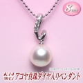 K14WGアコヤ真珠ダイヤ入りペンダント(8ミリ/チェーン有無選択可)