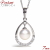 ドロップ形フレームの中でアコヤ真珠が艶やかに揺れる美しいフォルムのペンダント。
