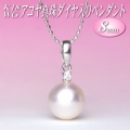 K18WGアコヤ真珠ダイヤ入りペンダント(8mm/チェーン有無選択可)