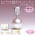 オーロラ花珠 アコヤ真珠 ペンダント K14WG ダイヤ入り (9mm/オーロラ花珠鑑別書付き/長さ調節可能なK18WG製チェーン付き)