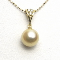 ナチュラルゴールドカラーのK18アコヤ真珠ダイヤ入りペンダント(8ミリ)