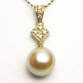 ナチュラルゴールドカラーのK18アコヤ真珠ダイヤ入りペンダント(9ミリ)