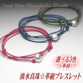 淡水真珠☆革紐ブレスレット