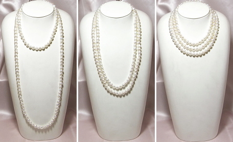 ![]() ![]() 淡水真珠ロングネックレス (9.0~8.0ミリ/120cm) ![]() ![]() 2重にして2連タイプ、3重にして3連タイプで使えます。 長さを変えたり、ねじりを入れたり、1連で結びを入れたり 様々なアレンジが可能です。 ![]() ![]() つるんとしたバロックシェイプを厳選。艶やかな輝きが魅力です。 |