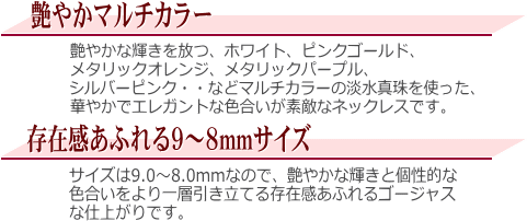 淡水真珠ネックレス(マルチカラー/9.0~8.0mm)