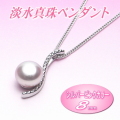 艶々てりてりシルバーピンクカラーの淡水真珠ペンダント(8ミリ)