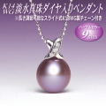 K14WG淡水真珠ダイヤ入りペンダント(パープルカラー/9mm/長さ調節可能なK18WG製チェーン付き) 古希・喜寿のお祝いにもおすすめ