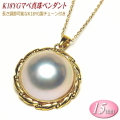 マベ真珠 ペンダント K18イエローゴールド 15mm 長さ調節可能なスライド式チェーン付き
