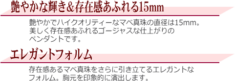 艶やかでハイクオリティーなマベ真珠の直径は15mm。