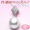 Pt(プラチナ)白蝶真珠ダイヤ入りペンダントトップ(13ミリ)