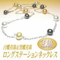 アレンジ多彩でスタイリッシュ!3色マルチカラーの白蝶&黒蝶真珠ロングステーションネックレス