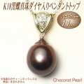 K18黒蝶真珠ダイヤ入りペンダントトップ (11ミリ/ショコラカラー)