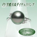 黒蝶真珠ダイヤ入りリング(9.7ミリ/プラチナ製/ピーコックグリーンカラー)