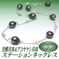 神秘的な美しいブラックグリーンカラーの黒蝶真珠とエレガントで気品がある シルバーブルカラーのアコヤケシ真珠を計16珠使い、チェーンで連結した スタイリッシュなフォルムが魅力のステーションネックレスです。 長さは最長約50cmで、フロントで留めるとY字タイプのネックレスに早変わり! 多彩なアレンジが楽しめて、重宝すること間違いなしです。個性的なバロック シェイプの黒蝶真珠。そして、ケシ系ナチュラルシェイプのアコヤケシ真珠。 この唯一無二の形と多面的に放たれるキラキラとした艶やかな輝きが魅力です。 |