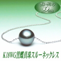 K18WG黒蝶真珠スルーネックレス(9ミリ/ブルーグリーンカラー)