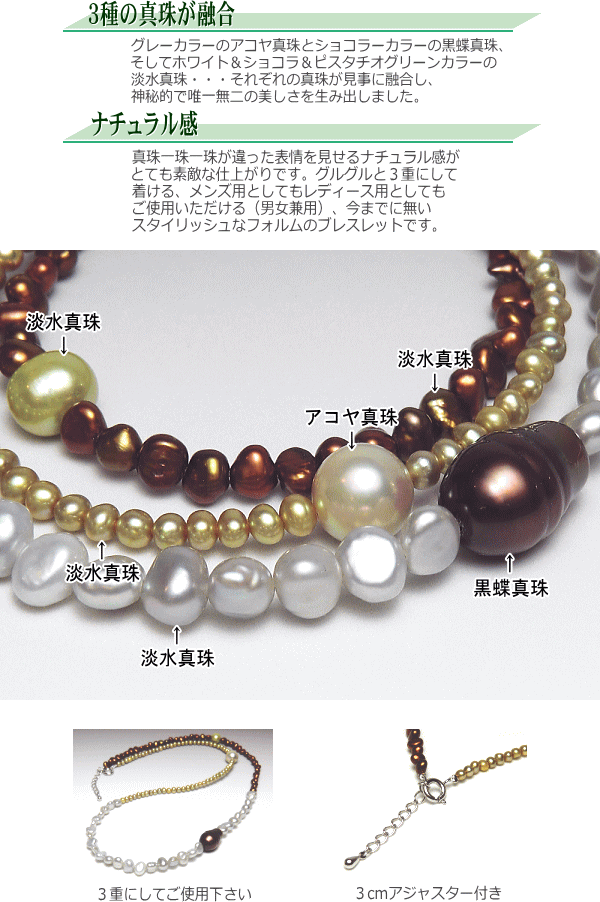 アコヤ真珠&黒蝶真珠&淡水真珠ブレスレット【Pearl Fusion(パールフュージョン)シリーズ】