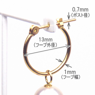 ■金具:K18イエローゴールド製、ポスト径(線径):0.7mm、フープ幅:1mm、フープ外径:13mm