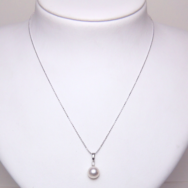 K14WGアコヤ真珠ダイヤ入りペンダント(8mm/チェーン有無選択可)
