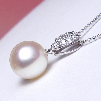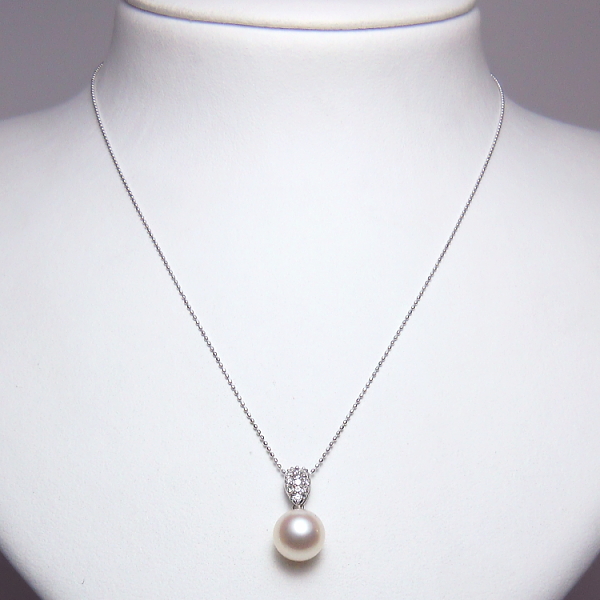 オーロラ花珠 アコヤ真珠 ペンダント K14WG ダイヤ入り (9mm/オーロラ花珠鑑別書付き/長さ調節可能なK18WG製チェーン付き)