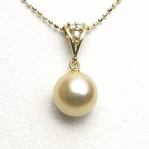 ナチュラルゴールドカラーのK18アコヤ真珠ダイヤ入りペンダント(8ミリ)
