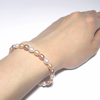 【キャンディーブレスレット】K18淡水真珠ブレスレット(3色マルチカラー/5.5~5.0ミリ)