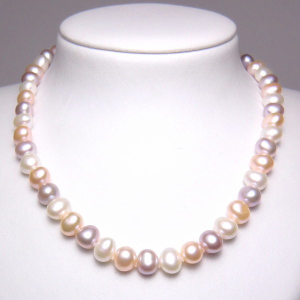 淡水真珠ネックレス(3色マルチカラー/8.0-9.0mm)【キャンディーネックレス】