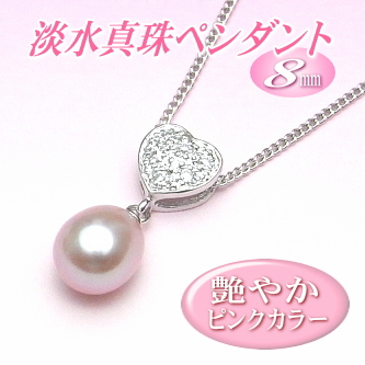 艶やかピンクカラーの淡水真珠ペンダント(8ミリ)