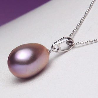 K18WG淡水真珠ダイヤ入りペンダント(パープルカラー/9ミリ/長さ調節可能なK18WG製チェーン付き)【古希・喜寿のお祝いにもおすすめ】