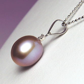 K18WG淡水真珠ダイヤ入りペンダント(パープルカラー/9mm/長さ調節可能なK18WG製チェーン付き) 古希・喜寿のお祝いにもおすすめ