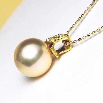 K18YG淡水真珠ダイヤ入りペンダント(ピンクゴールドカラー/9mm/長さ調節可能なK18YG製チェーン付き)