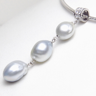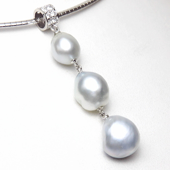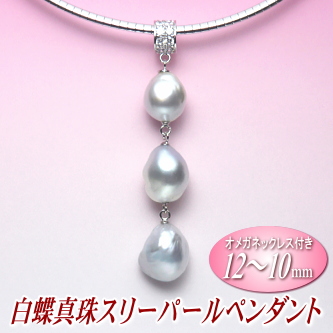 白蝶真珠スリーパールペンダント(12~10ミリ/長さ調節可能なスライド式オメガネックレス付き)